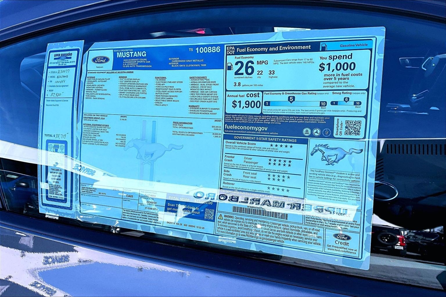 - Fuel Economy Est-Combined (MPG): 26